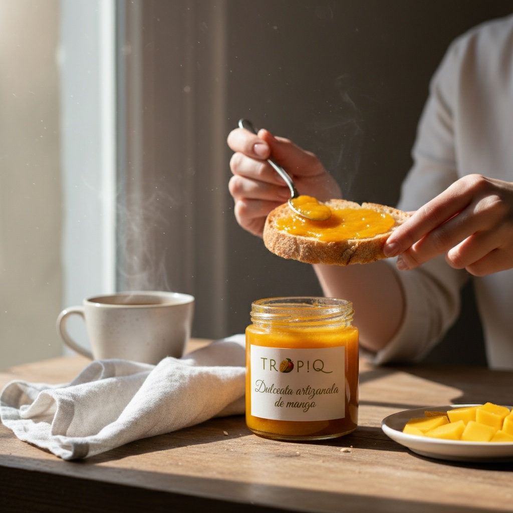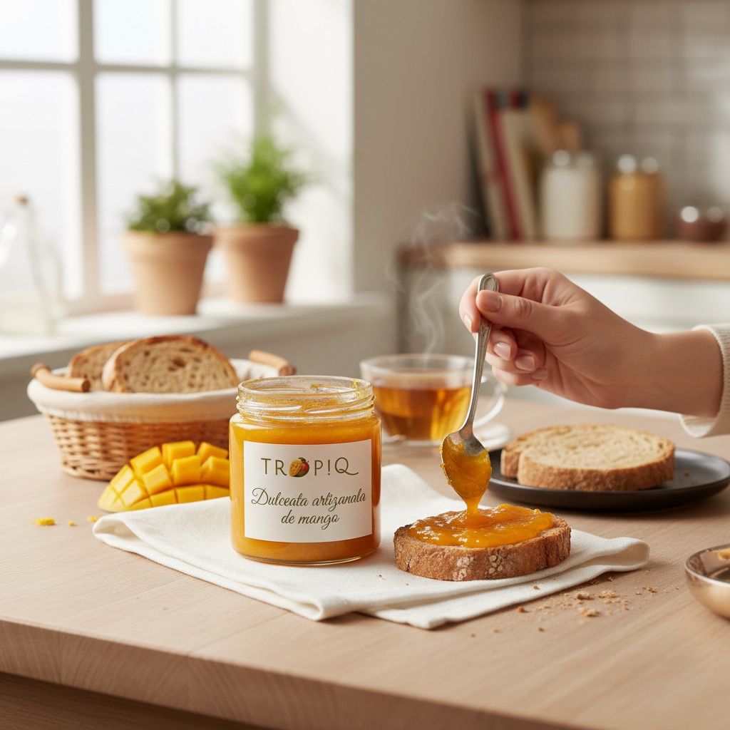 Dulceața de mango Trop!Q este felul nostru de a îmbutelia o parte din tot ce iubim la mango: aromă intensă, textură catifelată și dulceață naturală. O facem în loturi mici, ca să avem control maxim asupra gustului și constanței fiecărui borcan.